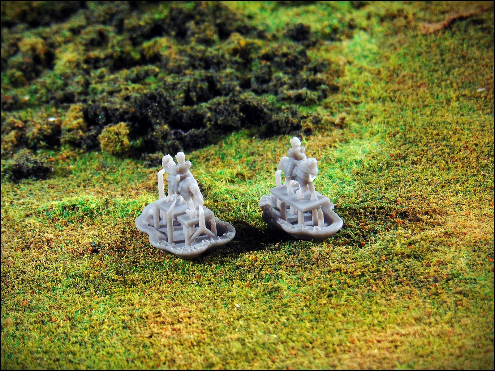 Wydrukowane figurki na „łódeczkach” ze wspornikami.