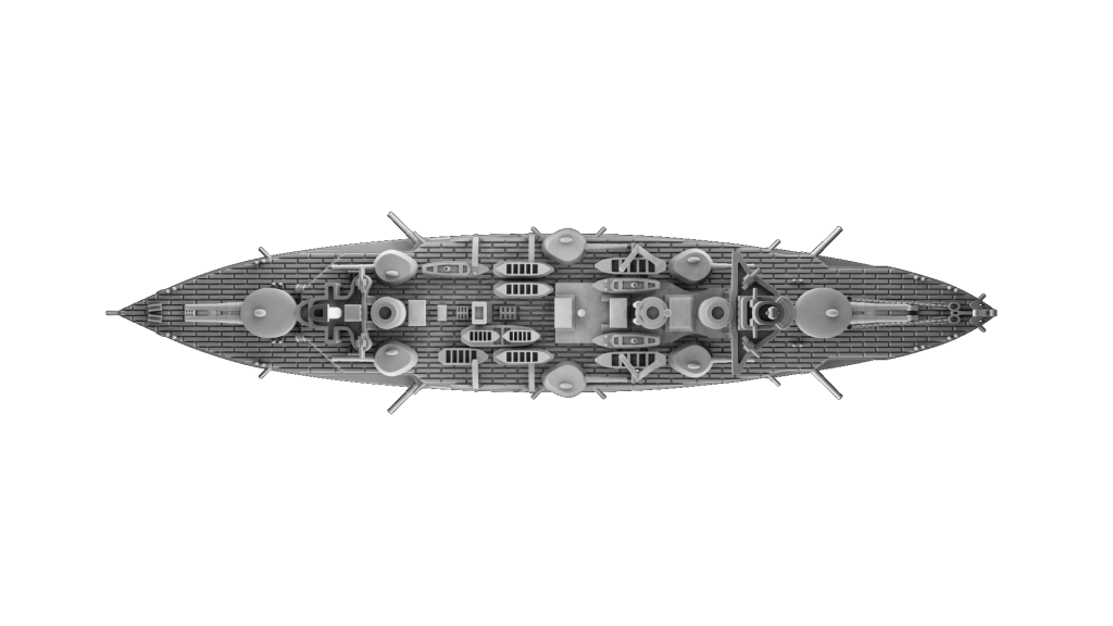 Główne uzbrojenie stanowiły dwa działa kal. 194 mm oraz czternaście dział kal. 138,6 mm. Dodatkowo okręt miał kilka szybkostrzelnych dział kal. 47 mm oraz dwie wyrzutnie torped kal. 450 mm.